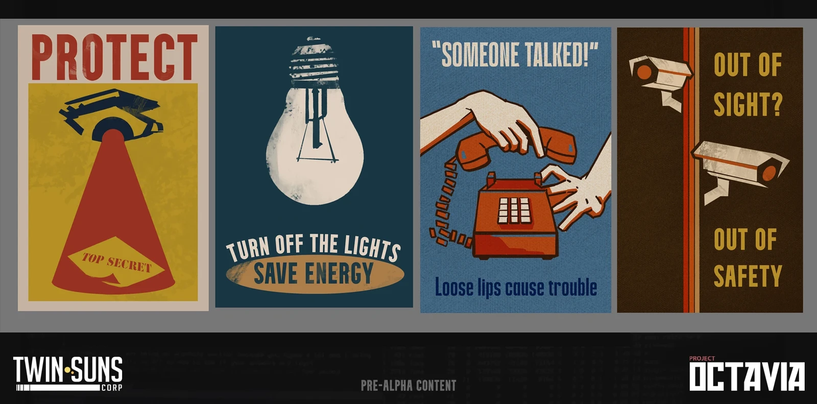 Project Octavia by Twin Suns Corp is a new and unique multiplayer game set in an alt-history sci-fi Cold War world where players take on the roles of super-spies within an immersive Stealth Action sandbox franchise. I had the pleasure of contributing some environments, props and illustrations to this awesome project. Besides environments and prop concepts, I also worked on in-game posters and illustrations depicting game mechanics. To find out more about the project, see behind the scenes and watch livestreams where devs discuss their thought process and play the game, visit Twin Suns Corp's official website: https://www.twinsunscorp.net/projectoctavia