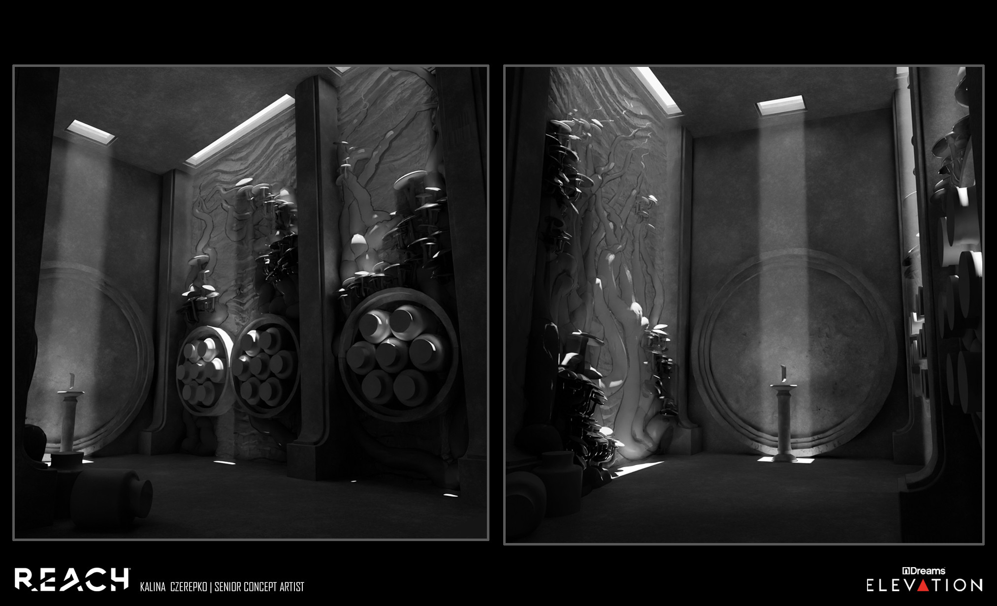 Some environments I concepted for Reach- a VR action platformer by nDreams Elevation.